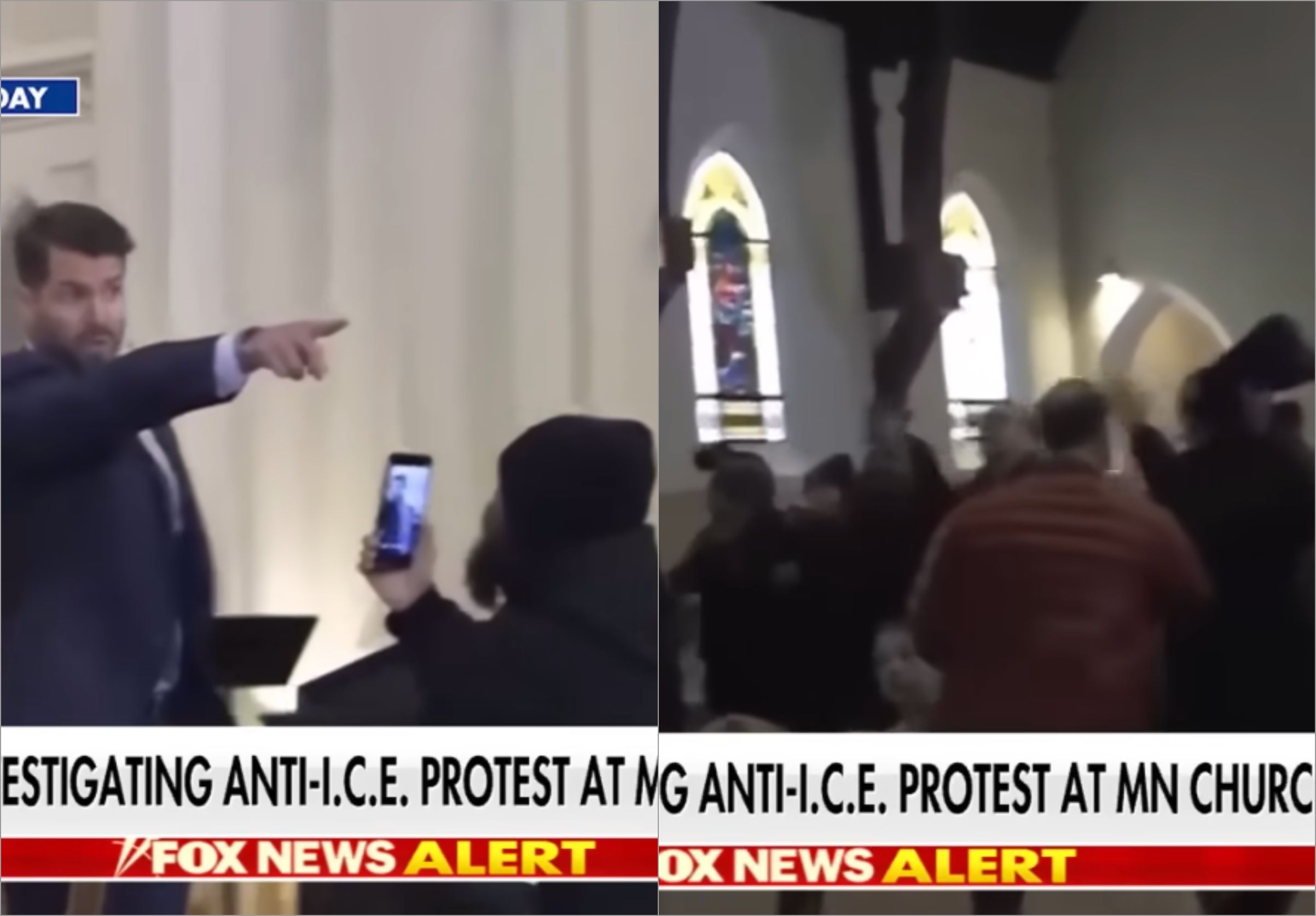 Armstrong, Allen e Kelly integraram um grupo associado à Rede de Justiça Racial que entrou na Cities Church (filiada à Convenção Batista do Sul) durante o culto e provocou o encerramento antecipado da cerimônia após gritar com os presentes. O grupo protestava contra o fato de o reverendo David Easterwood, um dos pastores, também atuar como diretor interino do escritório do ICE em St. Paul.