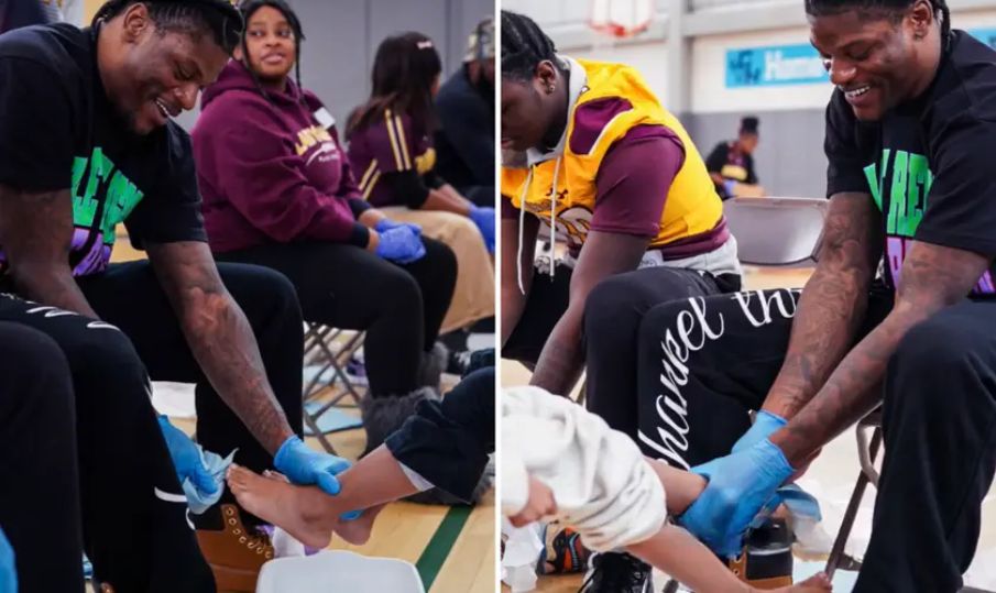 Além da lavagem dos pés, cada estudante presente recebeu um par de tênis novo. A organização do evento contou com apoio do capelão dos Ravens, Johnny Shelton.